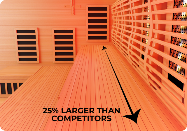 Many other sauna companies have decided what comfort means in a sauna, but we believe that standard was set too low for our customers. Therefore, we've expanded the interior space by an extra 25% in our saunas, ensuring that you can truly lounge comfort during your daily session.