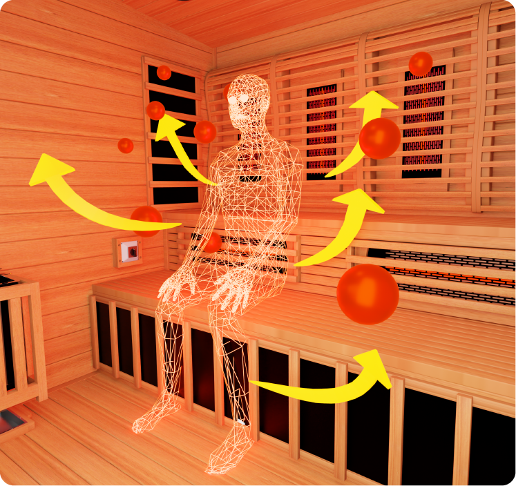 Medical Sauna™ is the first and only sauna on the market to offer 3D Heat Therapy™. Heat therapy has many benefits for your body including improving sore muscles, increasing range of motion, decreasing muscle spasms, and reducing pain. The 3D Heat Therapy™ works by penetrating deep into the body's tissue and cells as temperature rises, which leads to therapeutic benefits all over your body. This improved version of heat therapy, found only in a Medical Sauna™, will rejuvenate your body from the inside out.